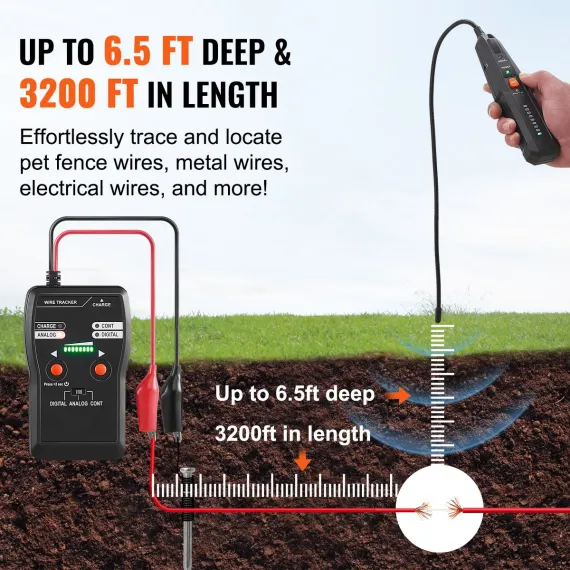 Exceptional Performance: Our underground cable locator boasts an impressive 6.5-foot detection depth and a remarkable 3280-foot detection length. Say goodbye to limitations in depth or distance as you effortlessly locate cable break points. Get the job done with precision and ease!