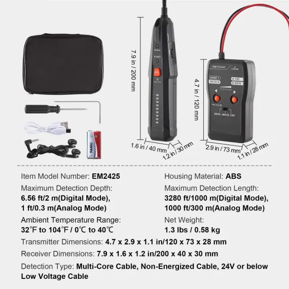 Versatile Applicability: Our underground cable locator is your go-to tool for accurately locating non-energized cables or 24V or below low-voltage cables(in digital mode only). Not applicable to cables with shielding. Get ready to conquer cable locating like never before! (Please note: the cable must be de-energized during cable location.)