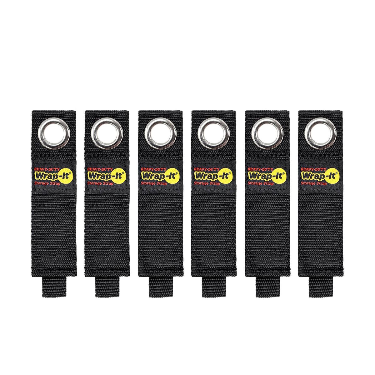 Wrap-It 10" x 1.5" 6pk Heavy Duty Storage Straps: Black Cable Management Cord Organizer