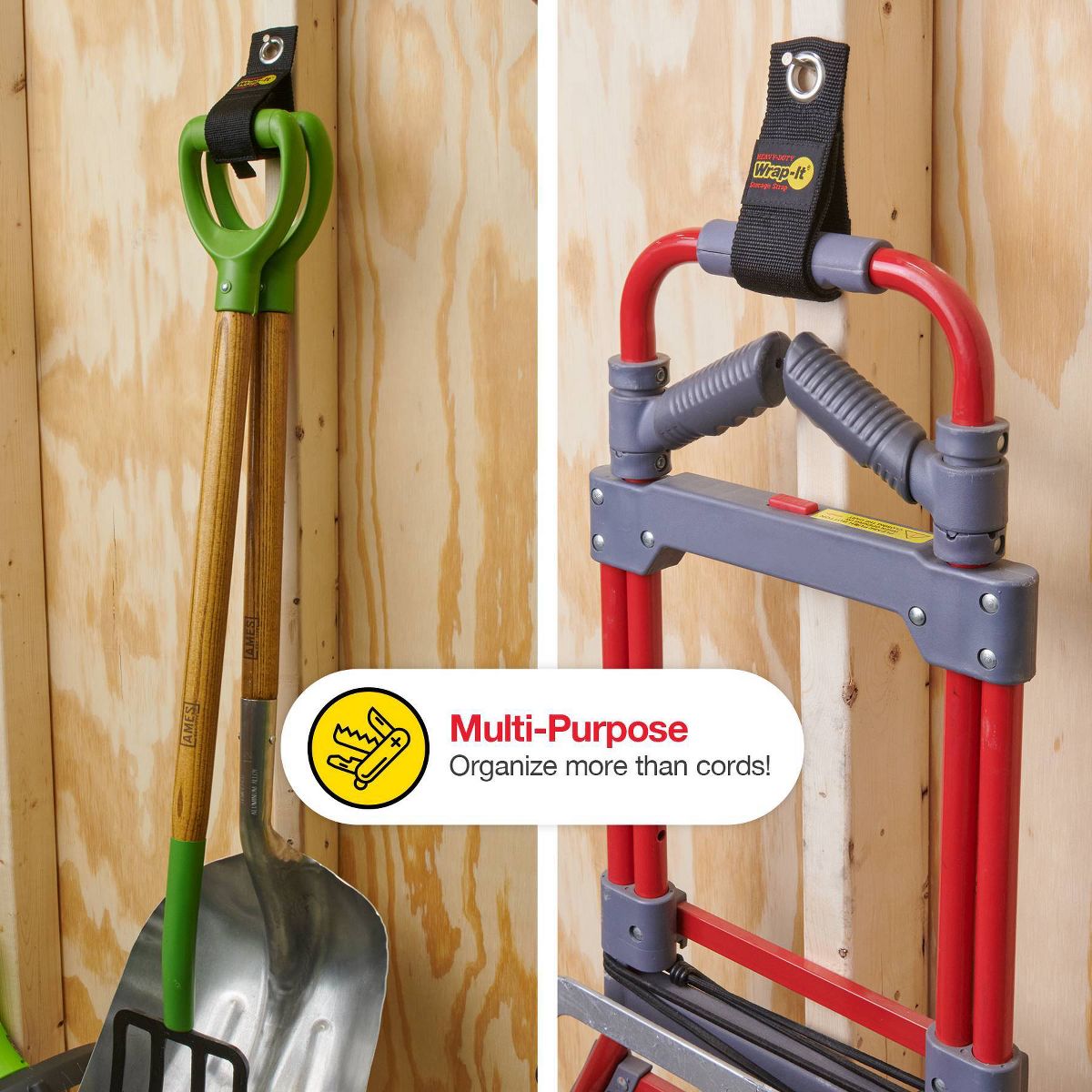 These grommet-geared best-sellers are made of super-tough polypropylene material and stainless steel. But you’ll swear we feed them nothing but meat and potatoes. They’ll get your bulky cables, hoses, cords and ropes looped, wrapped tight and stored up and away like a power-lifter. They’re perfect for every-day, anywhere use. Use Heavy-Duty Wrap-It Storage Straps for storage and organization in the garage, shed, shop, around the house, boat, camper or RV. No more bulky cord reels, these straps are the best solution for organizing extension cords, hoses, rope and so much more!