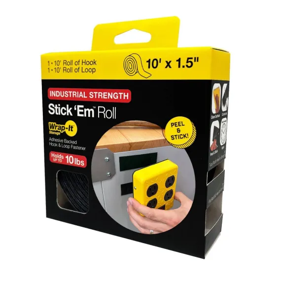Wrap-It 10' x 1.5" Stick 'Em Adhesive Back Hook and Loop Roll Industrial Strength: Cable Management Cord Organizer