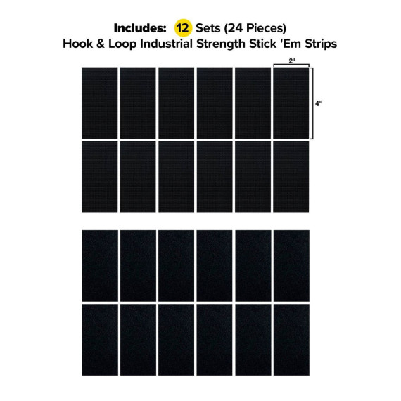 Wrap-It 12 Sets 4''x2'' Stick'Ems Strips Industrial Strength Black