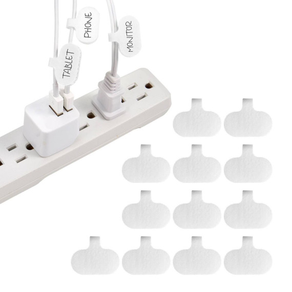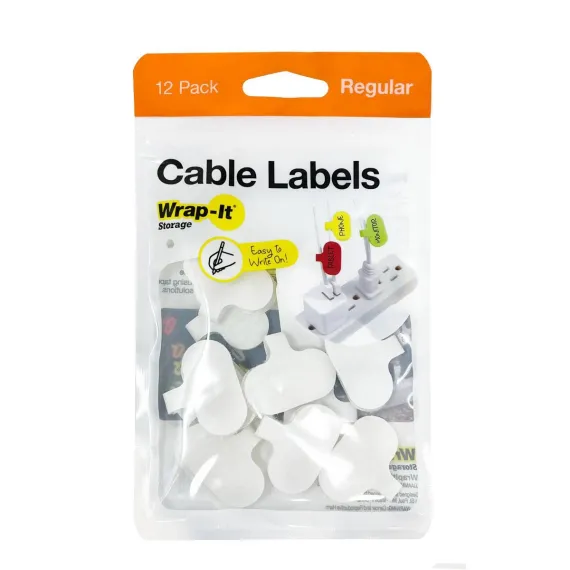 Wrap-It 12pk Storage Cable Labels Regular White: Cord Organizer & Cable Management Clips