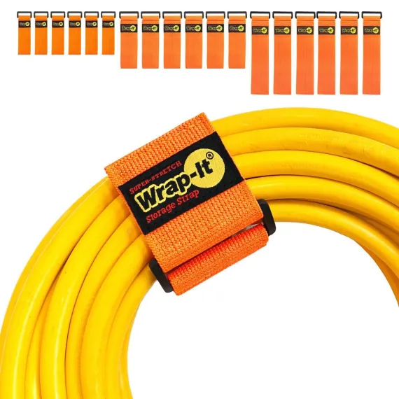 Super-Stretch straps for your super-storage problems. Made with elastic hook and loop allowing you to tightly wrap up and bundle items for clutter-free storage and organization. These elastic cinch straps stretch up to 1.5x the length for extra adjustability and snug hold. Use these storage straps as an extension cord organizer, cord wrap, cord keeper, hose strap and cable straps; or for hose storage, cord storage, garage storage and organization, and RV storage solutions; and even as bike straps, securing straps, luggage straps and more! The uses are endless.