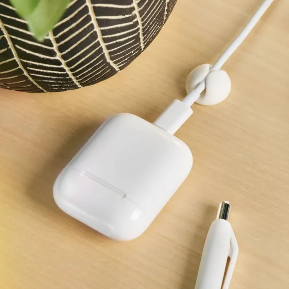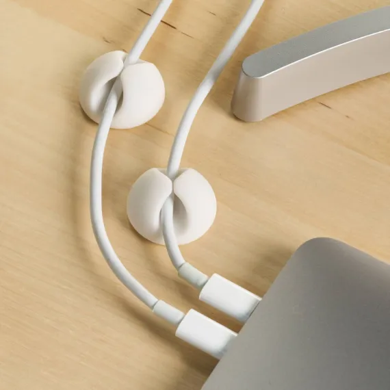 Tame the travesty of tumultuous tangles taking over your tidy table. Our adhesive-backed cable clips easily install to keep those unwieldy cords on the straight and narrow. Simply peel & stick, then place wherever taming need occur—nightstands, desks, kitchen counters, or car dashes. Perfect for chargers, headphones, or stray USB cables.