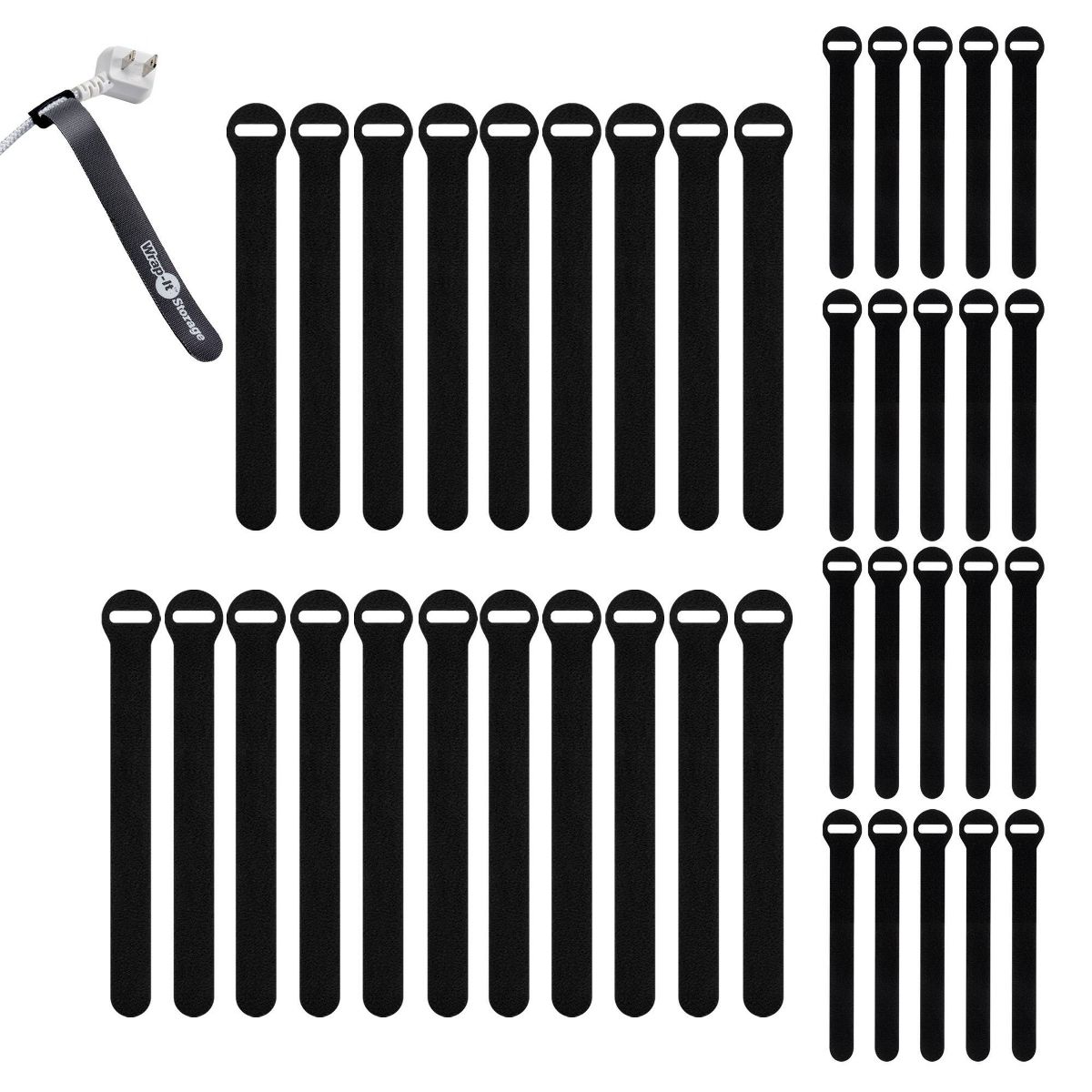 Wrap-It 40pk 5" and 8" Storage Self-Gripping Cable Ties Black: Cord & Cable Organizer, Cord Wraps, Cord Ties