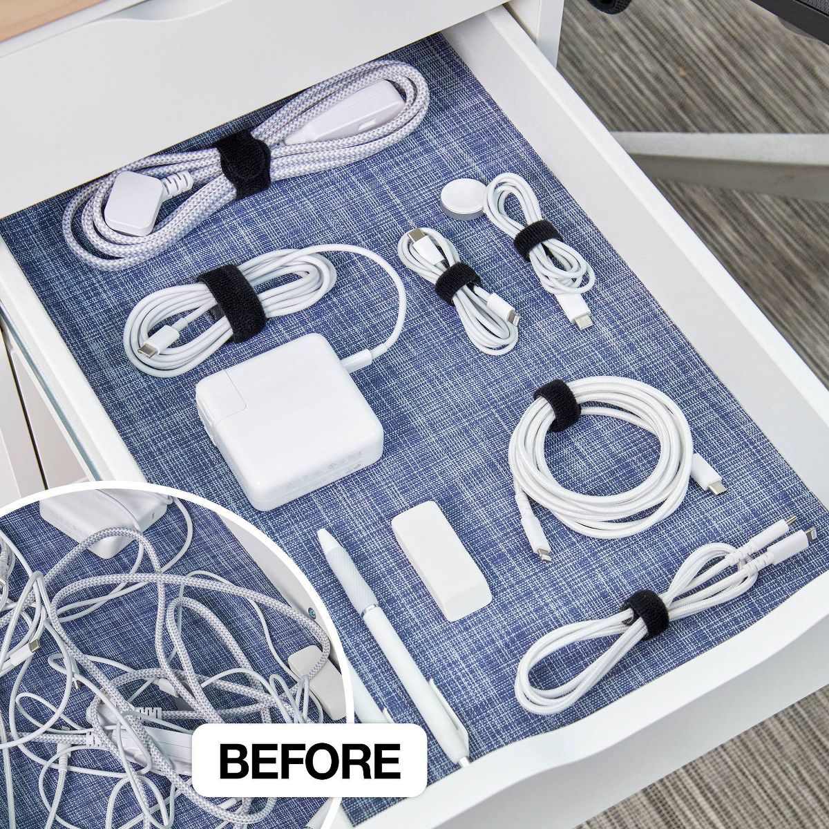Organize your office, home, and desk effortlessly with our versatile cable cord organizers. Our assorted sizes are perfect for securing and bundling charging cords, appliance cords, small extension cords, and more. These hook and loop cable cord organizers remain attached to the cord when not in use, so you won't lose them! Made from heavy-duty nylon, they feature exceptional durability for both indoor and outdoor use. Say goodbye to zip ties and other fasteners - our adjustable self-fastening cable ties are the perfect alternative. These multipurpose cable ties can be utilized for TV and computer cable management, small extension cord storage, network wire ties, electric and appliance cord organization, charging cord management, cable organization, and much more. Discover the countless uses for these reliable cable ties!