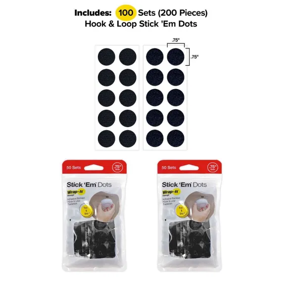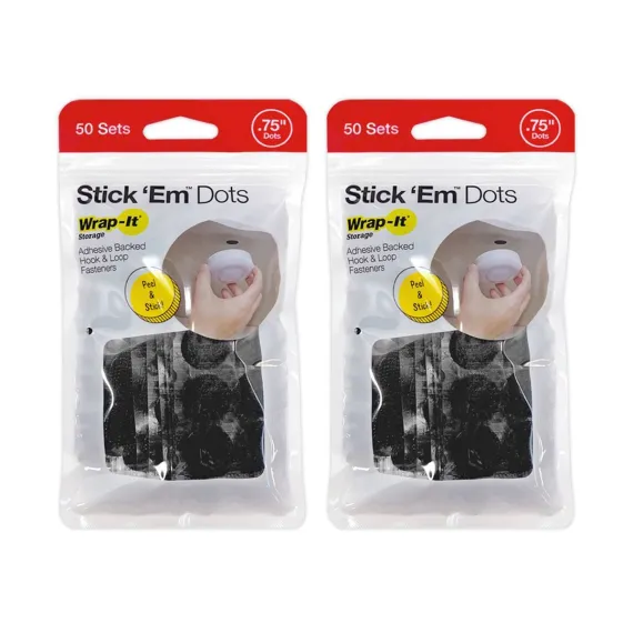 Wrap-It 64 Sets Square Stick 'Em Adhesive Back Hook and Loop: Cable Management Cord Organizer Clips, Black