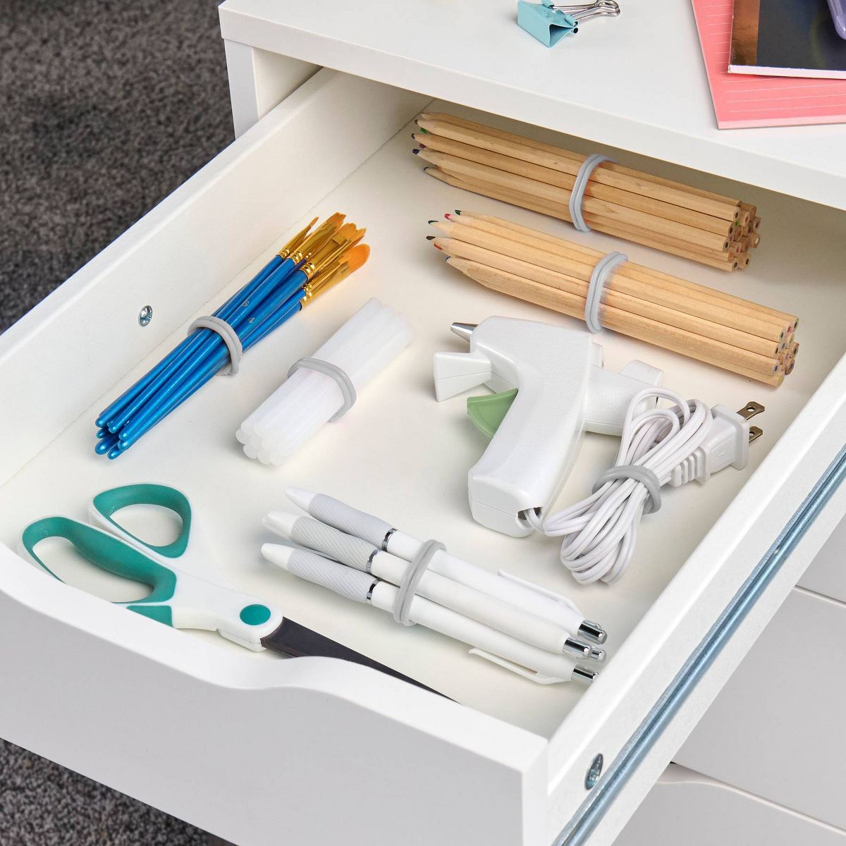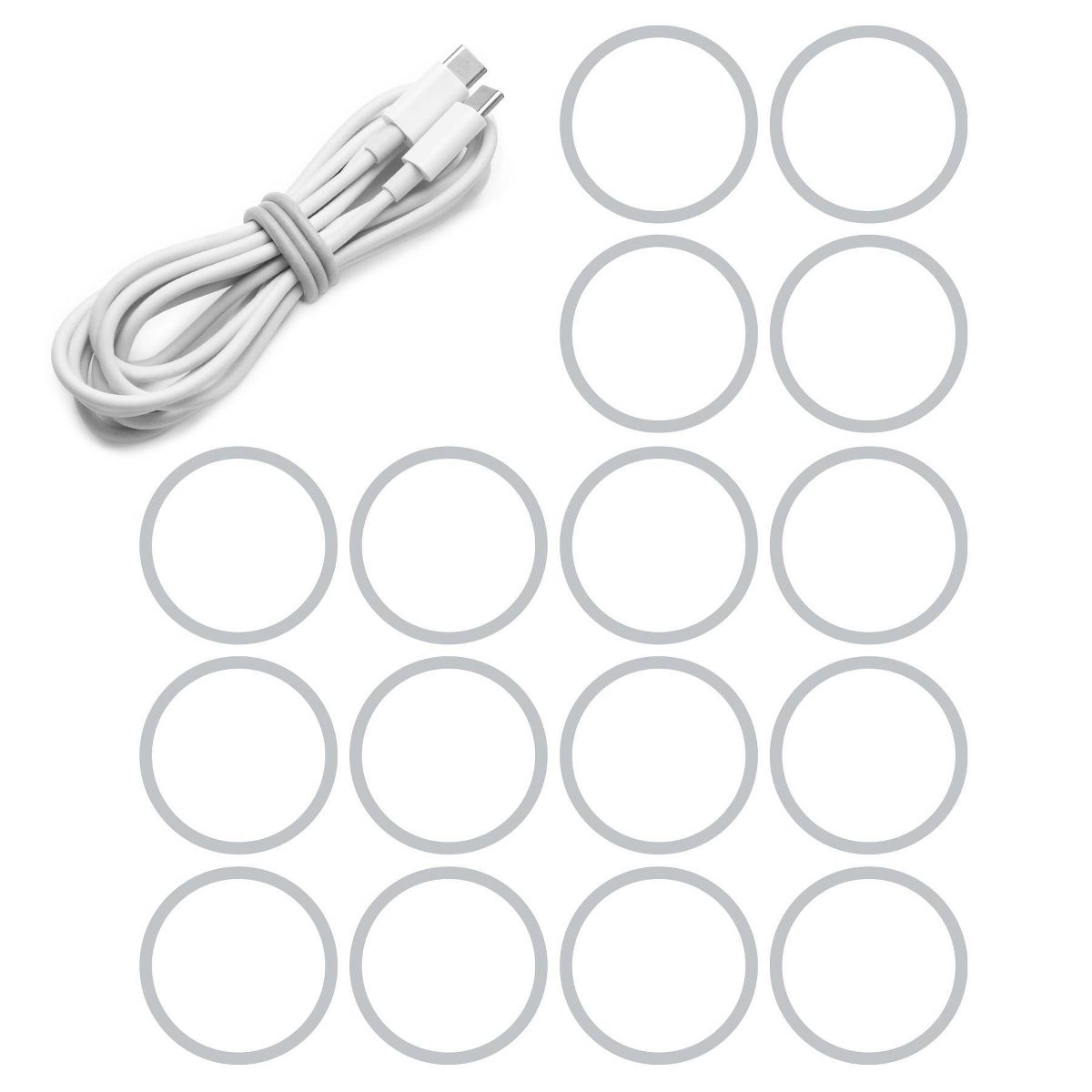 We challenged the team in R&D to create our most ingenious product ever. They came back with these colorful circles. Brilliant, right? Trying to calculate the uses fried our calculator. Cords, cables, earbuds, chargers, posters, ponytails, floral arrangements, wads of cash…their uses stretch into the -illions. They’re also fun for fidgeting. (Or so we hear.)