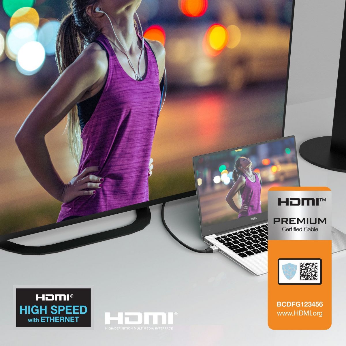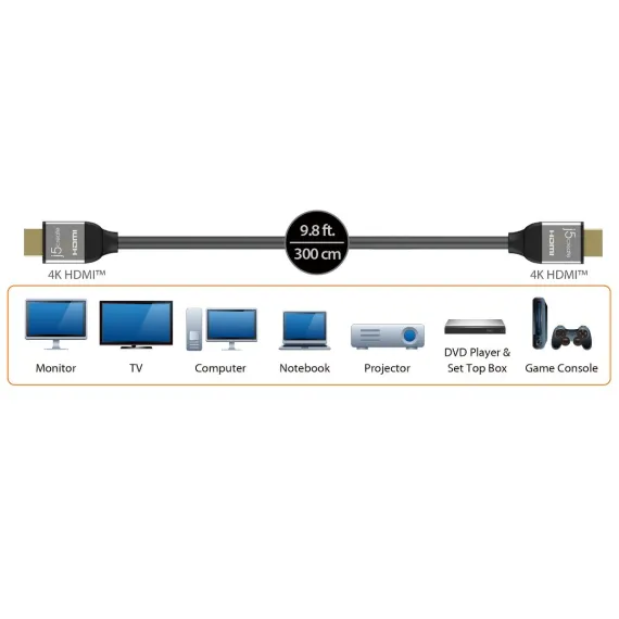 The JDC52 Premium High Speed HDMI Cable with Ethernet can be used to connect a variety digital devices to an HDMI display. Works with laptops, desktops, docking stations, capture cards, and other devices with HDMI ports.