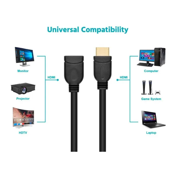 Monoprice 8-inch 28AWG High Speed Male to Female HDMI Port Saver - Black