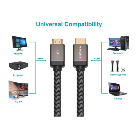 The Monoprice 8K Certified Braided Ultra High Speed HDMI Cable is the next generation of HDMI cable. Certified by an HDMI authorized testing center, these cables support up to 8K@60Hz/4K@120Hz resolution, 48Gbps bandwidth, and all features found in the HDMI 2.1 specification. It features next-gen technology, which makes it the perfect choice for the latest gaming consoles, including the Sony PlayStation 5, PlayStation 5 Digital Edition, Microsoft Xbox Series X, and Xbox Series S. The high strength braided cable resists damage that ordinary cables are prone to. Connect your devices without worrying about eventual cuts, kinks, or everyday wear and tear to your cable.