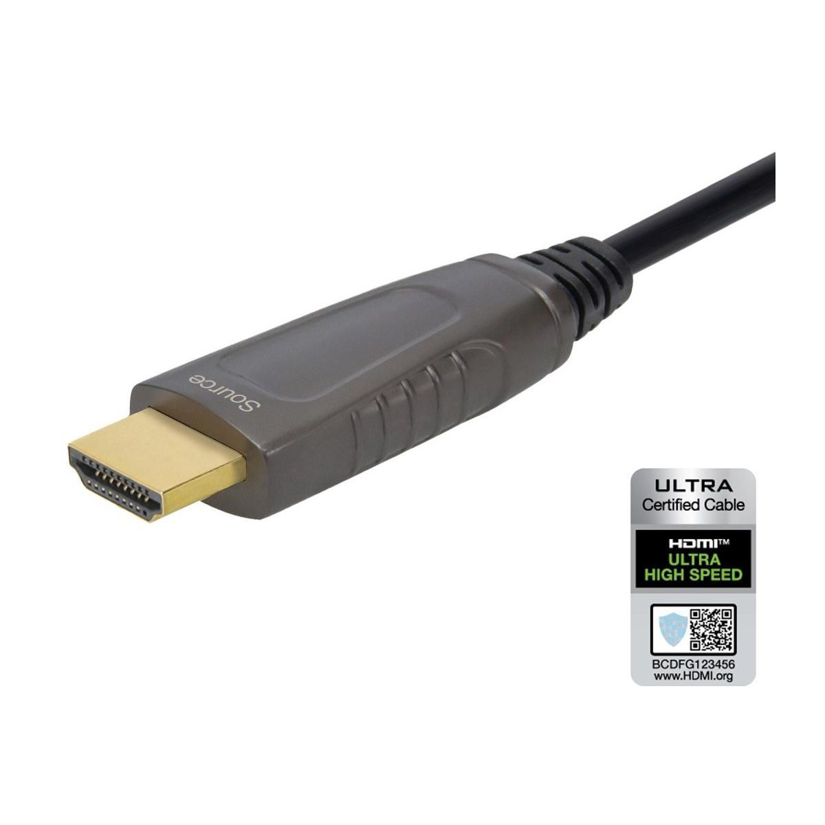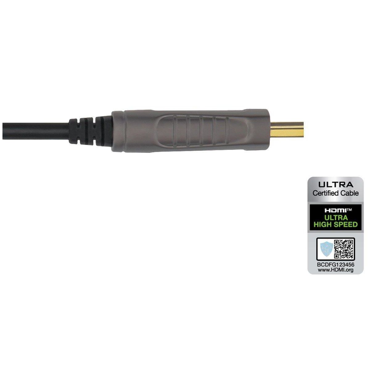 The Monoprice SlimRun AV 8K Certified Ultra High Speed AOC HDMI Cable enables full 8K performance over distances up to 65 feet. These cables are certified by an HDMI-authorized testing center; it supports up to 8K@60Hz or 4K@120Hz resolutions with up to 48Gbps bandwidth and all other features found in the HDMI 2.1 specification. The cables feature next-gen fiber optic technology, making it the perfect choice for the latest gaming consoles, including the Sony PlayStation 5, PlayStation 5 Digital Edition, Nintendo Switch, Microsoft Xbox Series X, and Xbox Series S. Being CMP Plenum-rated, it is certified for in-wall installation in the plenum air spaces of commercial and residential buildings.