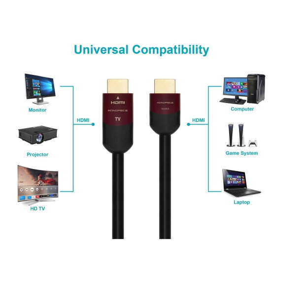 Monoprice 4K High Speed HDMI Cable supports high-speed 4K video and audio transmission with HDR and Dolby Vision. Designed for home theater systems, it ensures optimal performance and reduced interference.