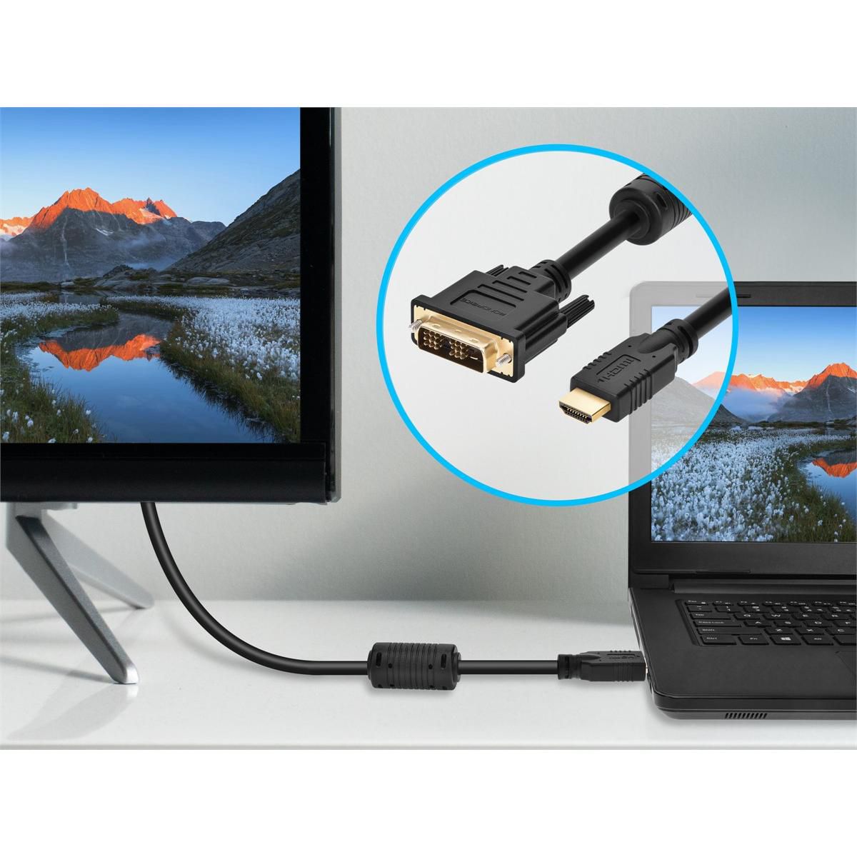 Monoprice HDMI to DVI Adapter Cable - 25 Feet - Black | Standard, 26AWG CL2, Ferrite Cores, Compatible with AVCHD / PlayStation 3 and More