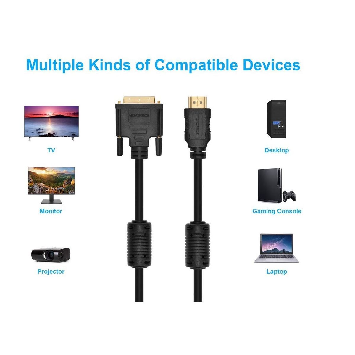 Monoprice HDMI to DVI Adapter Cable - 3 Feet - Black | High Speed, 28AWG, 1080p Resolution, Ferrite Cores, Compatible with AVCHD / PlayStation 3 and