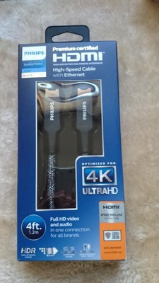 Channel a superior HDTV viewing or gaming experience with the Philips Elite Premium Certified High-Speed HDMI® Cable with Ethernet. Its increased HDR capability supports up to 60 frames per second, delivering a bright, clear picture with richer, more vibrant colors designed to enhance your digital experience. With built-in Ethernet and the ability to transfer data at 18Gbps, this HDMI cable is future-ready.