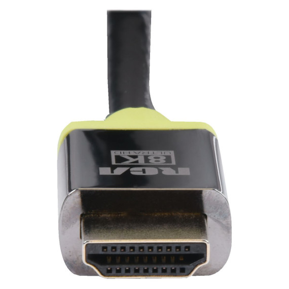 Give yourself the gold standard in gaming connectivity with this 8K Ultra High Speed HDMI Cable by RCA. This item boasts gold-plated connector construction to ensure a precise fit for enhanced picture clarity, more accurate sound, and lag-free interactivity—making it ideal for gaming. The 10-ft. cable carries uncompressed high-definition video and digital audio signals for ultimate performance up to 4320p, from standard stereo to multi-channel surround sound. Modern performance-enhancing technology (Variable Refresh Rate, Auto Low Latency Mode, and Quick Frame Transport) reduces or eliminates the possibility for lag, judder, and frame tearing for smoother, better detailed gameplay. RCA's 8K Ultra High Speed HDMI cable is certified to perform at standards set by HDMI._