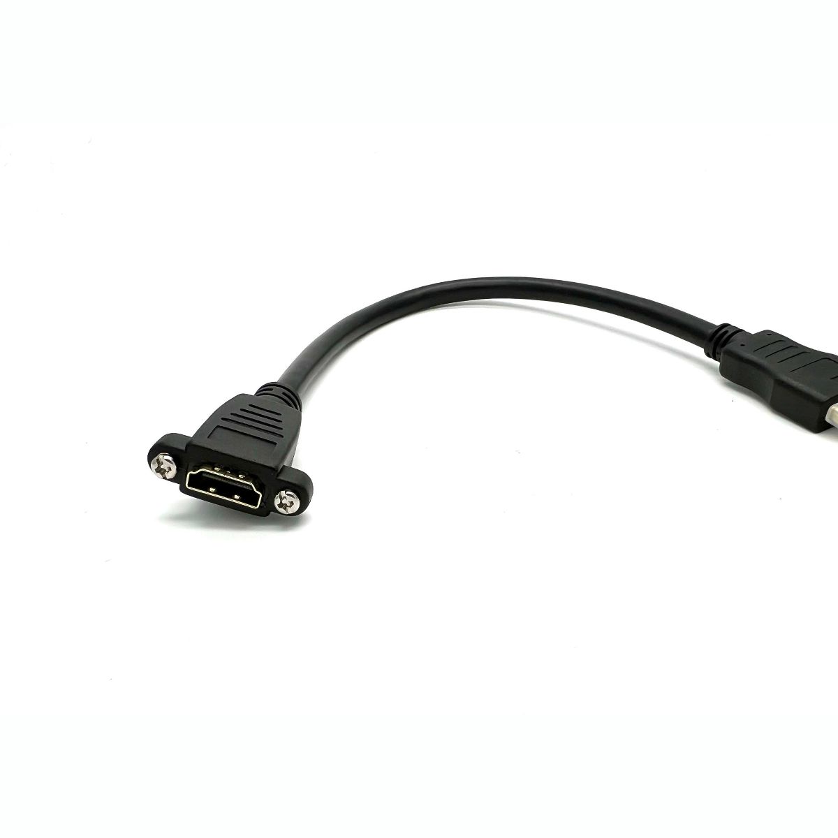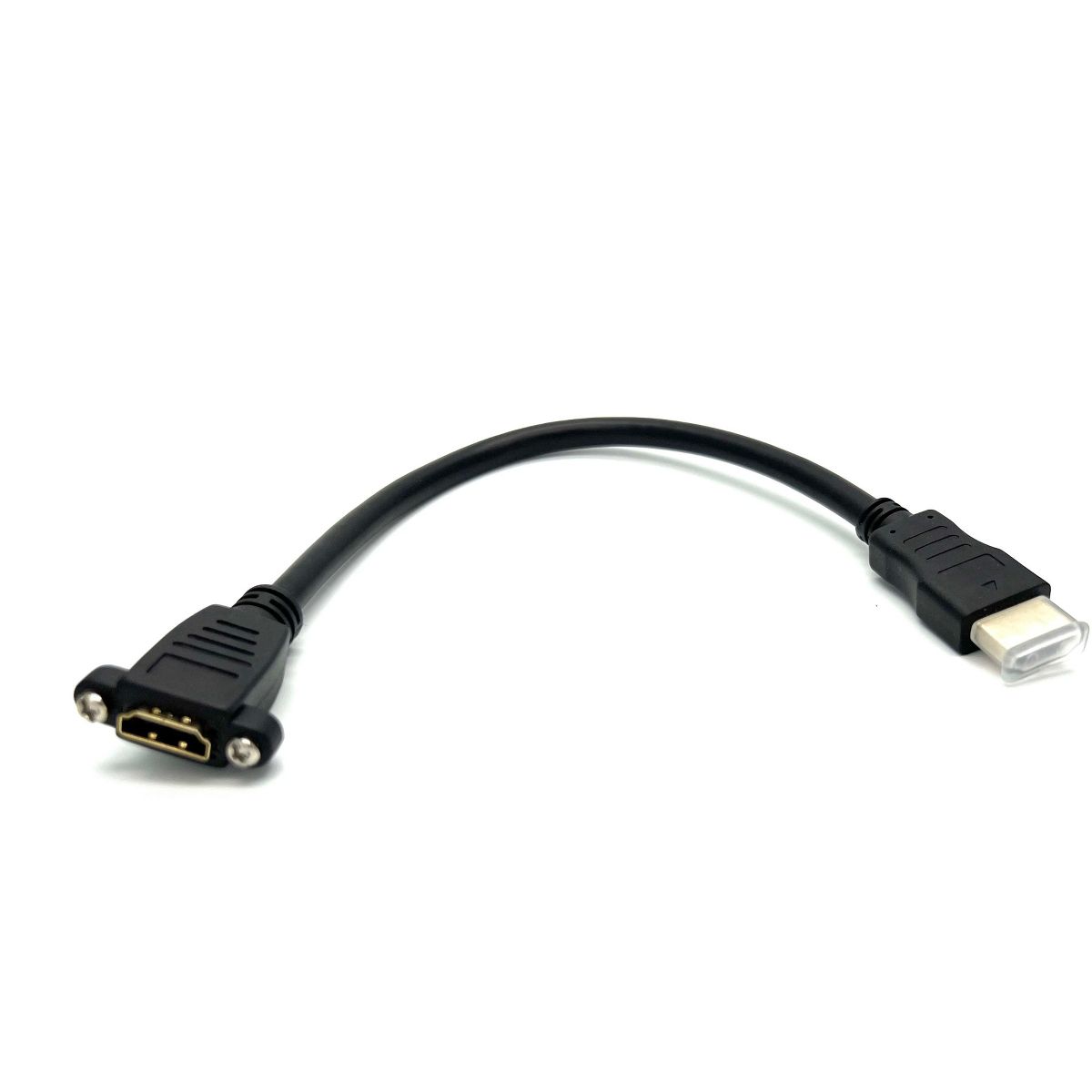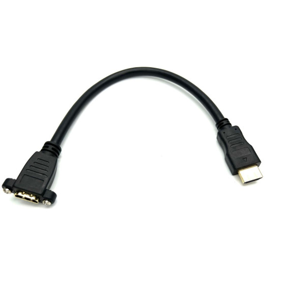 HDMI Panel-Mount Male to Female Extension Cable with Ethernet. Panel-Mount Type HDMI 1.4 Male to Female Extension Cable w/ Ethernet 4K 3D. This Panel-Mount Type HDMI version 1.4 extension can be used for extending the length of an existing HDMI cable and connect to all different types of audio and video devices. The panel mount design can be easily mounted to faceplate, accessible panels, wall unit and modules. HDMI is the solution for people who prefer a universal cable to connect their Blu-Ray or DVD Players,