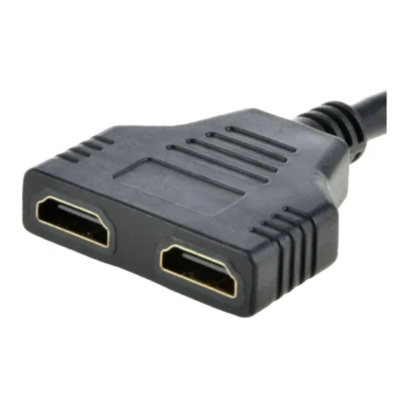 This HDMI splitter cable allows you to connect one HDMI device to two visual output devices. It is ideal for connecting a Bluray player, Xbox, or other HDMI device to two TVs or projectors. The splitter supports high definition image resolutions up to 1080p. Benefits: Connect one HDMI device to two visual output devices. Plug and play, easy to use