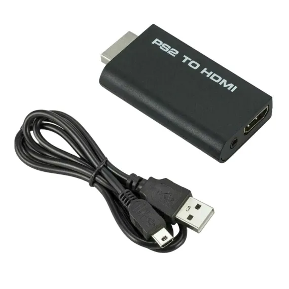 This PS2 to HDMI converter adapter allows you to connect your PS2 console to your HDTV or monitor via HDMI. It supports all PS2 display modes and outputs pure digital HDMI video/audio signals, with no transmission loss. Plug and play, no driver or power adapter required. Input Connector: PS2 AV Multi Out Plug x 1 Output Connector: HDMI Connector x 1, 3.5mm Stereo Audio Jack x 1
