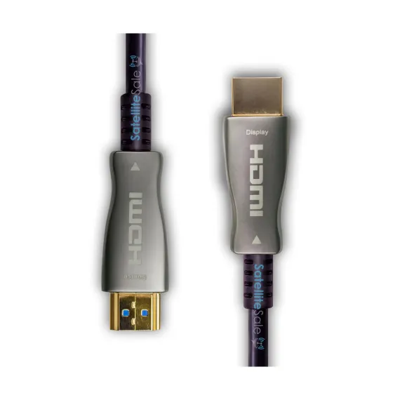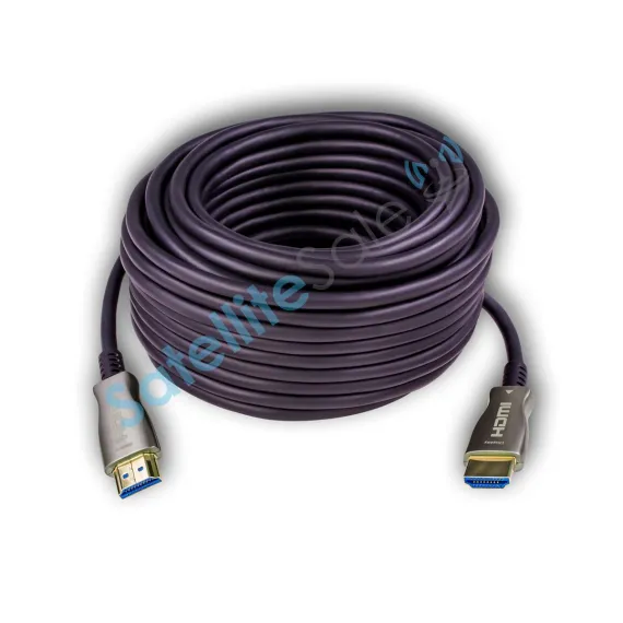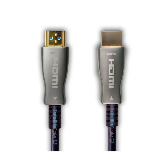 SatelliteSale High-Speed Fiber Optic HDMI Cable Universal Wire is a premium cord combing that uses the latest technology in fiber optic audio-video transfer. It is an essential cord to buy when it comes to playing video games on the latest generation of consoles or watching TV shows with your family. Our High-Speed Fiber Optic v2.0 HDMI cable is an easy-to-use, plug and play accessory. It provides a top-notch data communication channel between the connected devices. A thick black PVC jacket combines a simple, minimalistic design and safety of the cord, while aluminum housing and gold plated connectors will resist oxidation and serve much longer compared to the other materials. Comes in sizes of 50 feet and 100 feet. SatelliteSale Digital High-Speed 2.0 Fiber Optic HDMI Cable (4K/60Hz,18Gbps) PVC 2160p Black Cord provides you with the highest resolution quality and beautiful image that is on the market for sale. It can be easily plugged into your audio/video devices such as Gaming Consoles, Desktop and Laptop Computers, Monitors, Projectors, Soundbars, Smart TVs, Blu-ray Players, Cable Boxes, and more. Every cable we sell is a perfect match for both commercial and residential use. We assure the lifetime service of each cable to deliver a positive experience to our clients.