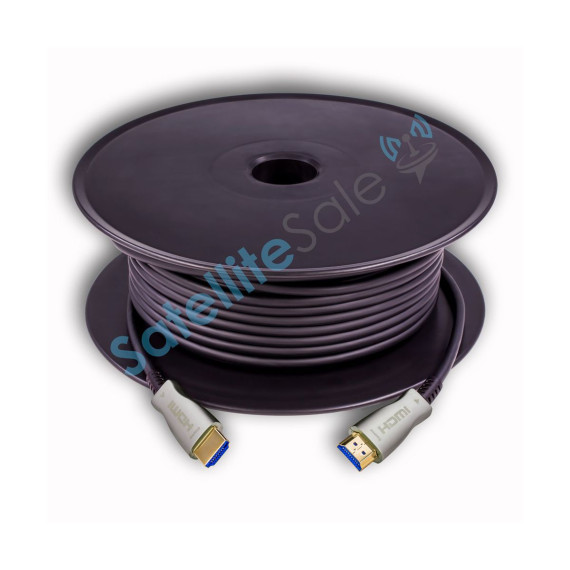 SatelliteSale High-Speed Fiber Optic HDMI Cable Universal Wire is a premium cord combing that uses the latest technology in fiber optic audio-video transfer. It is an essential cord to buy when it comes to playing video games on the latest generation of consoles or watching TV shows with your family. Our High-Speed Fiber Optic v2.0 HDMI cable is an easy-to-use, plug and play accessory. It provides a top-notch data communication channel between the connected devices. A thick black PVC jacket combines a simple, minimalistic design and safety of the cord, while aluminum housing and gold plated connectors will resist oxidation and serve much longer compared to the other materials. Comes in sizes of 50 feet and 100 feet. SatelliteSale Digital High-Speed 2.0 Fiber Optic HDMI Cable (4K/60Hz,18Gbps) PVC 2160p Black Cord provides you with the highest resolution quality and beautiful image that is on the market for sale. It can be easily plugged into your audio/video devices such as Gaming Consoles, Desktop and Laptop Computers, Monitors, Projectors, Soundbars, Smart TVs, Blu-ray Players, Cable Boxes, and more. Every cable we sell is a perfect match for both commercial and residential use. We assure the lifetime service of each cable to deliver a positive experience to our clients.