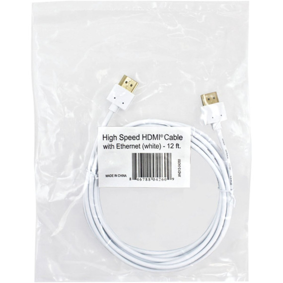 The Vericom VU Series High Speed Ultra-Slim HDMI Cable with Ethernet provides a reliable, high-quality connection between audio and video components such as Blu-ray players, cable and satellite set-top boxes, DVD players, A/V receivers, gaming consoles, and much more. This ultra-slim cable profile allows for professional installations in tight spaces. The 12-ft. White cable features a durable molded PVC housing, gold-plated contacts, and corrosion-resistant gold-plated connectors with triple shielding for added EMI/RFI protection. The Vericom VU Series High Speed Ultra-Slim HDMI Cable with Ethernet consistently delivers the picture and sound quality today’s discriminating A/V enthusiasts demand._