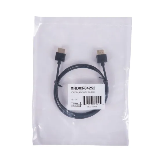 The Vericom VU Series High Speed Ultra-Slim HDMI Cable with Ethernet provides a reliable, high-quality connection between audio and video components such as Blu-ray players, cable and satellite set-top boxes, DVD players, A/V receivers, gaming consoles, and much more. This ultra-slim cable profile allows for professional installations in tight spaces. The 3-ft. Black cable features a durable molded PVC housing, gold-plated contacts, and corrosion-resistant gold-plated connectors with triple shielding for added EMI/RFI protection. The Vericom VU Series High Speed Ultra-Slim HDMI Cable with Ethernet consistently delivers the picture and sound quality today’s discriminating A/V enthusiasts demand._