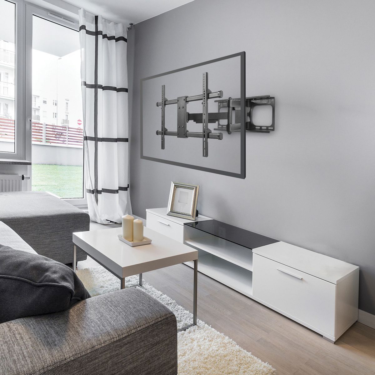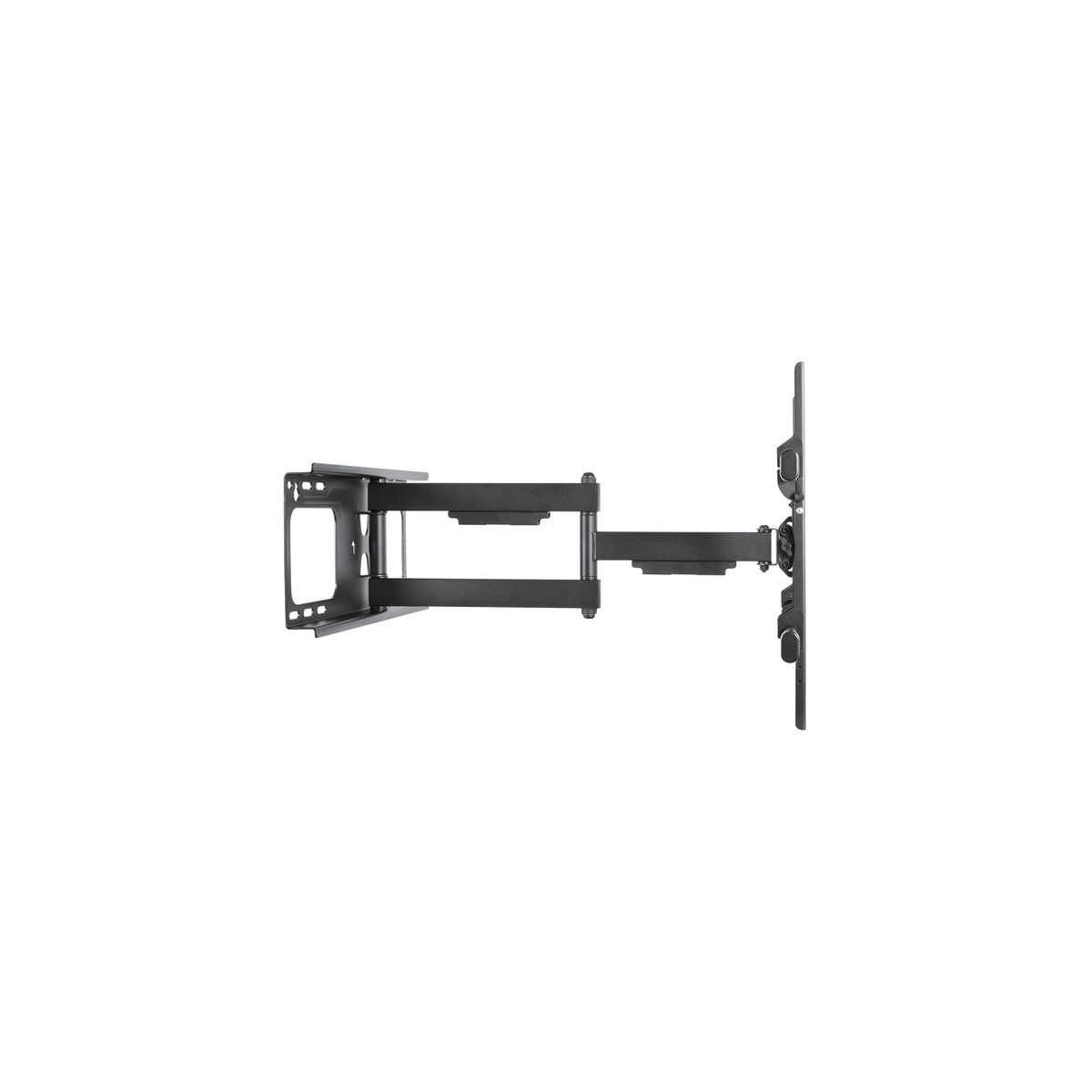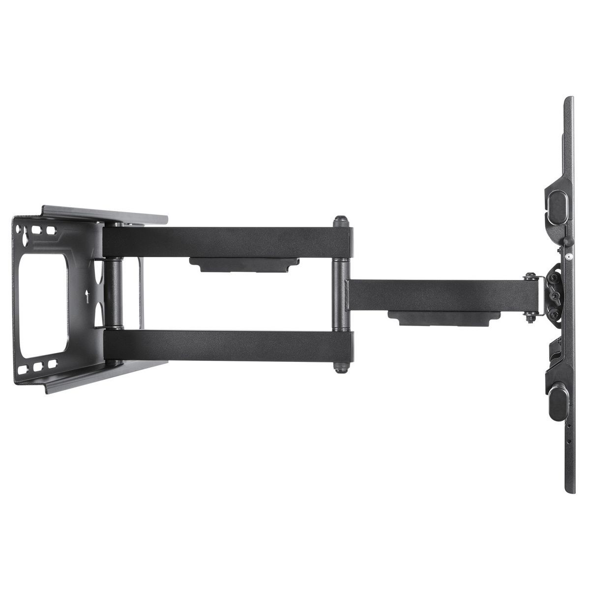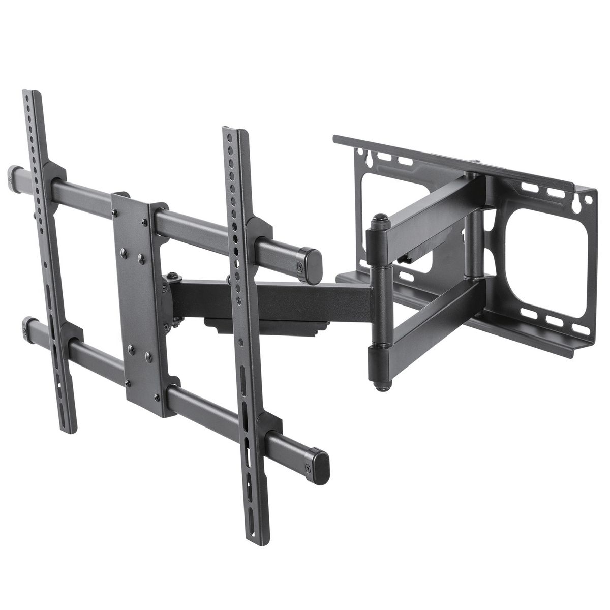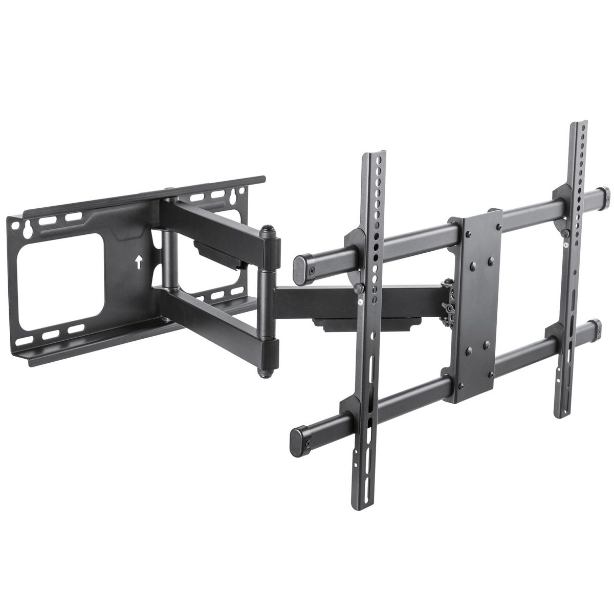 The BLACK+DECKER 40 In. to 86 In. Full Motion Flat Panel Large Mount is easy to install and features cable management. It can extend up to 24 in. out from the wall. This full motion TV mount is designed for units 40 in. to 86 in. and can hold up to 130 lbs._
