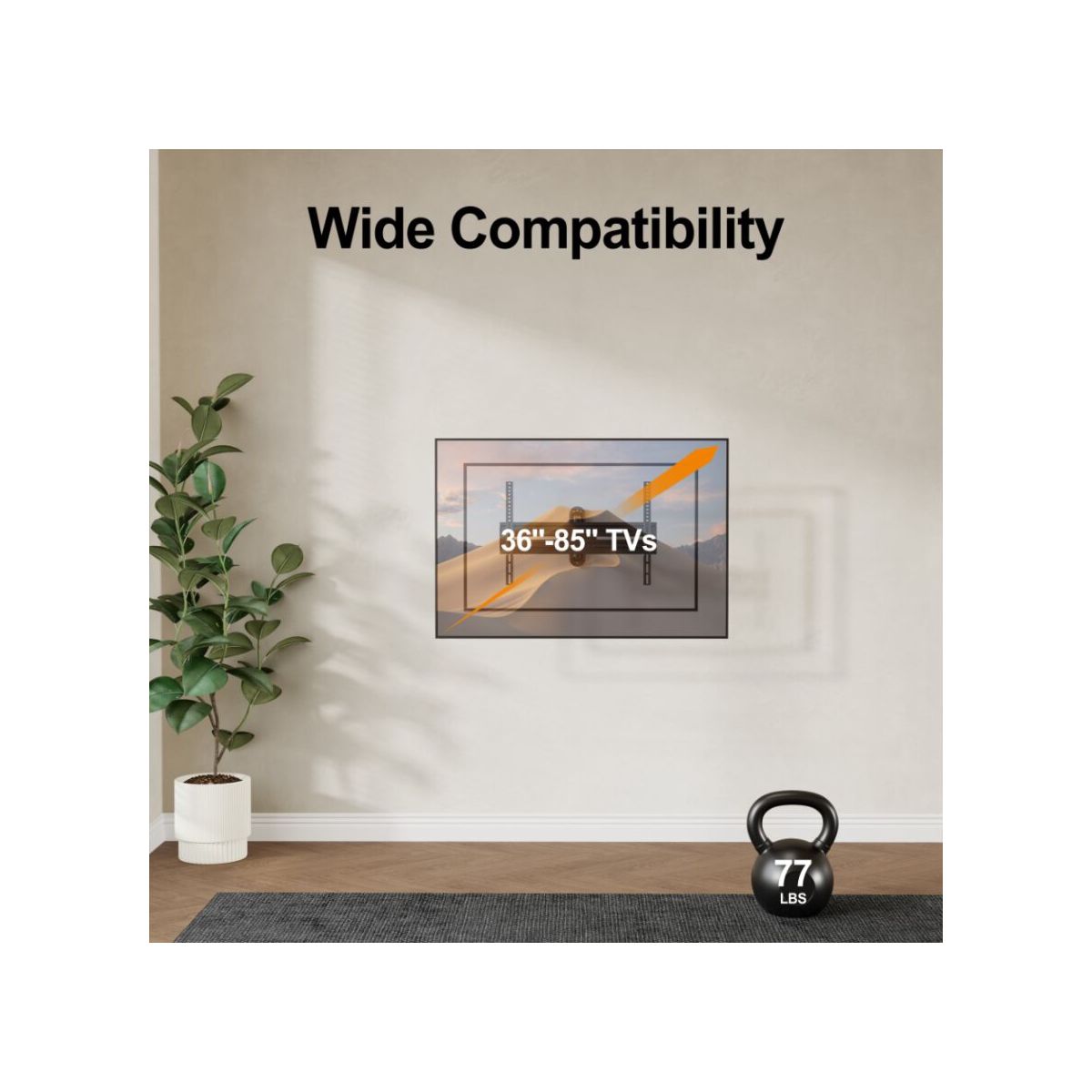 Transform your home theater experience with this high-quality Full-Motion TV Mount, designed to fit most 36"-85" flat and curved TVs. Engineered for flexibility and durability, this mount supports up to 77 lbs, ensuring a secure and stable setup for larger screens. Perfect for living rooms, bedrooms, or entertainment spaces, it allows you to enjoy a wide range of viewing angles and positions with ease.