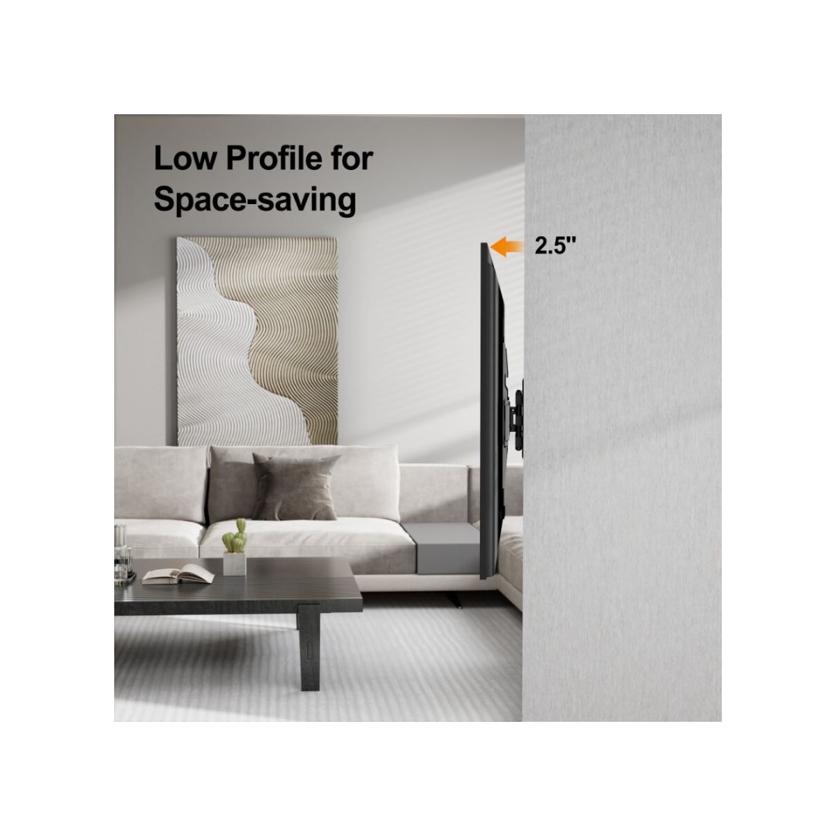 Featuring full motion capabilities, this mount allows you to extend, swivel, tilt, and rotate your TV for the best viewing comfort. Adjust your TV up to 14.1 inches from the wall or 2.5 inches. Swivel it 180° to the left or right, ensuring you can always find the perfect angle, no matter where you're sitting. The +3°~-16° tilt function also helps reduce glare and improves viewing comfort.