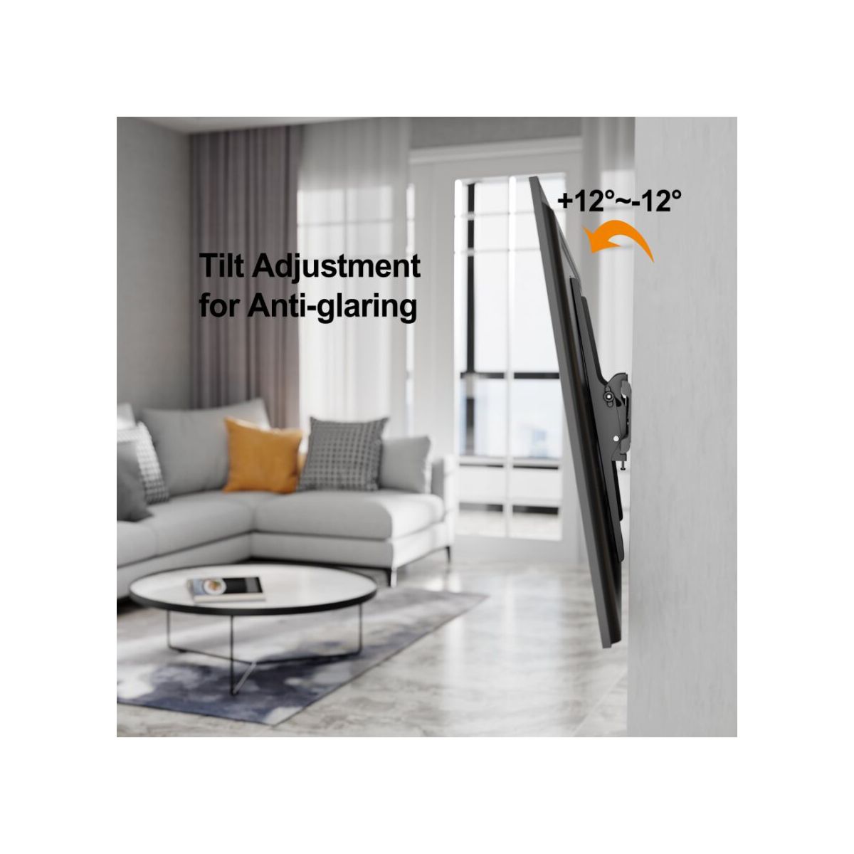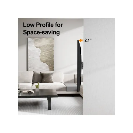 Featuring a simple yet effective tilt function, this mount allows you to easily tilt your TV ±12° for improved comfort and reduced eye strain. Whether you're watching from the couch, standing, or lying down, you can customize the angle to suit your needs. The low profile design (2.1" off the wall) keeps your TV close to the wall, providing a clean, modern look while saving space.