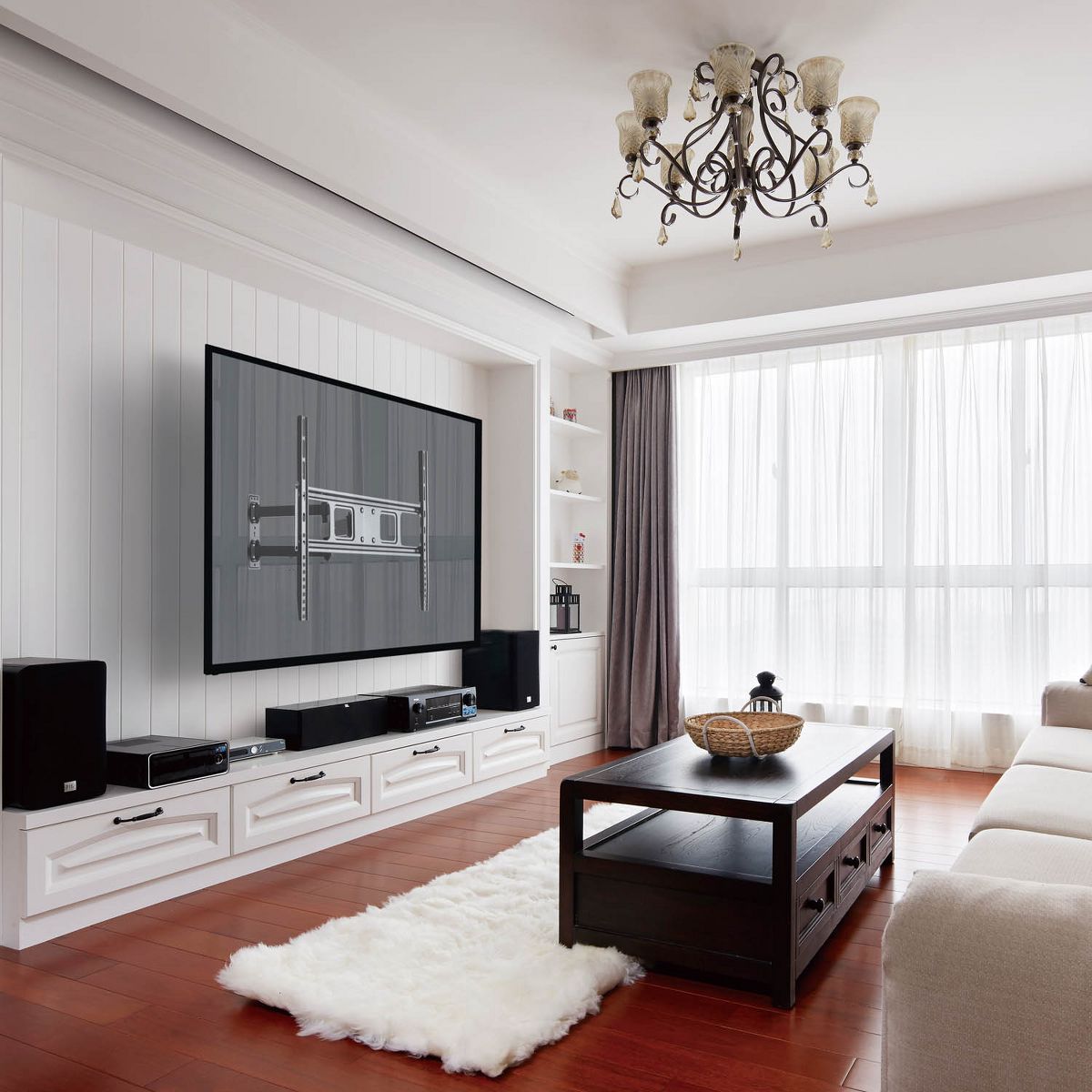 The universal VESA compatibility (up to 600x400mm) ensures that this mount fits most TV brands, providing a versatile solution for all your mounting needs. With easy-to-follow installation instructions and all necessary hardware included, this mount can be quickly installed on wood studs, concrete, or drywall.
