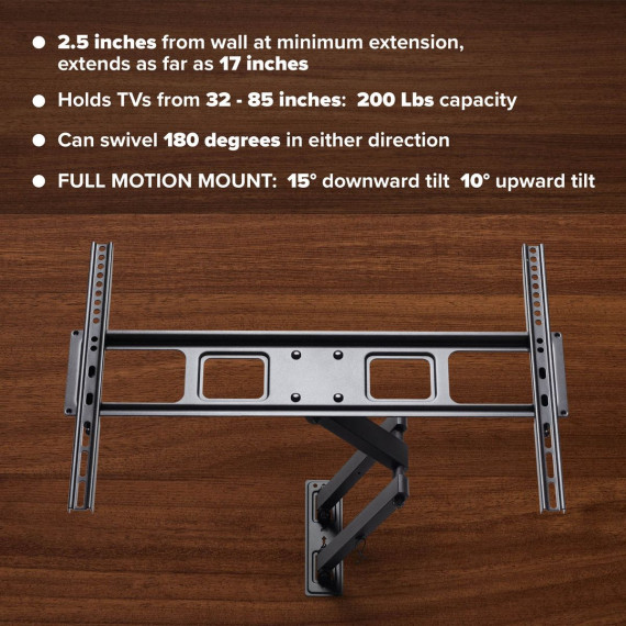 Emerald Full Motion Swivel & Tilt Wall Mount for 32"-85" TVs, Heavy Duty 154 lbs Capacity