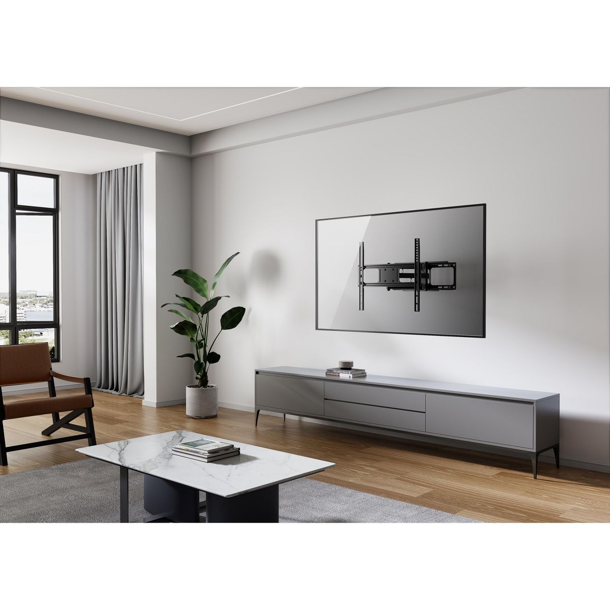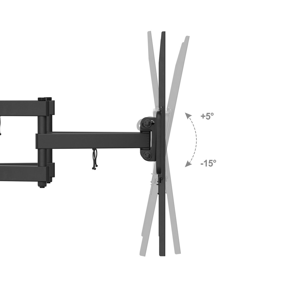 Featuring full-motion capabilities, this mount allows you to extend, swivel, tilt, and rotate your TV for the best viewing comfort. Adjust your TV up to 16 inches from the wall and swivel it 180° to the left or right, ensuring you can always find the perfect angle, no matter where you're sitting. The +/- 15° tilt function also helps reduce glare and improves viewing comfort.