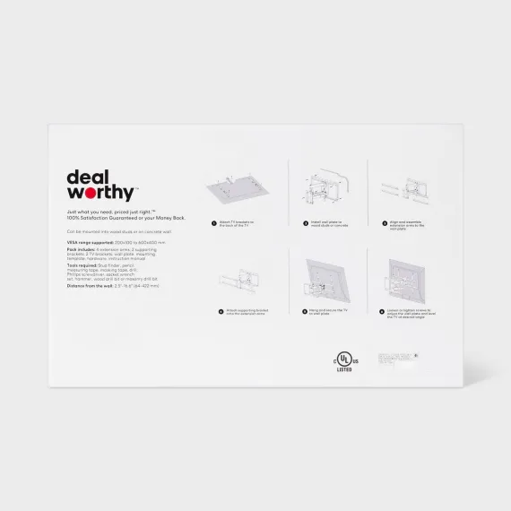 Upgrade your entertainment setup with the Full Motion 40" - 90" TV Mount from dealworthy™, designed to accommodate TVs ranging from 40 to 90 inches and holding up to 120 pounds. This robust mount features a full-motion design that allows for a 45-degree turn, providing flexibility in viewing angles to enhance your viewing experience. Constructed from steel, it ensures durability and stability, making it a reliable choice for your home. Whether you’re watching your favorite movie or playing video games, this TV mount provides the ideal tilt for maximum enjoyment.