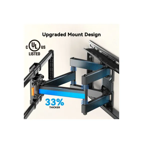 Full Motion TV Wall Mount for 40-86 In flat screen TVs weighing up to 132 LBS, Max VESA 600 x 400mm, Tool free tilting and rotation