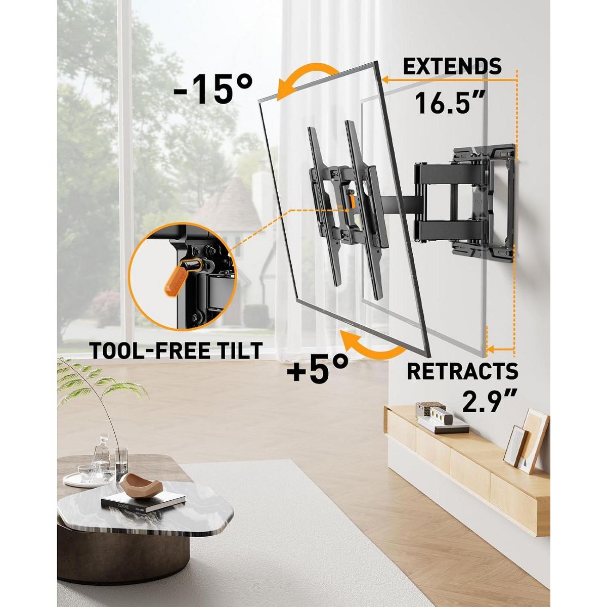Full Motion TV Wall Mount for Most 42–84 inch Flat Curved TVs up to 132 lbs, Bracket with Articulating Arms, Swivel, Tool-Free Tilt