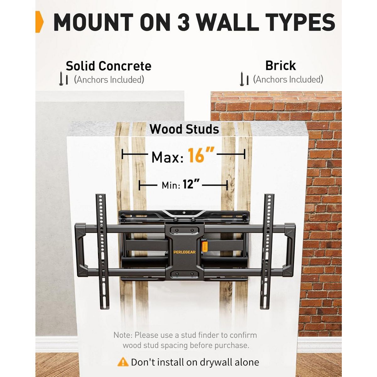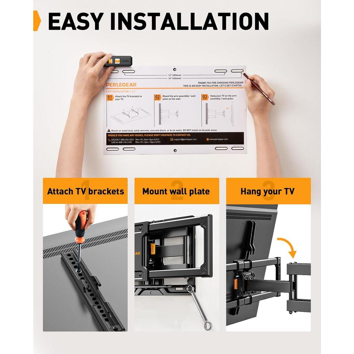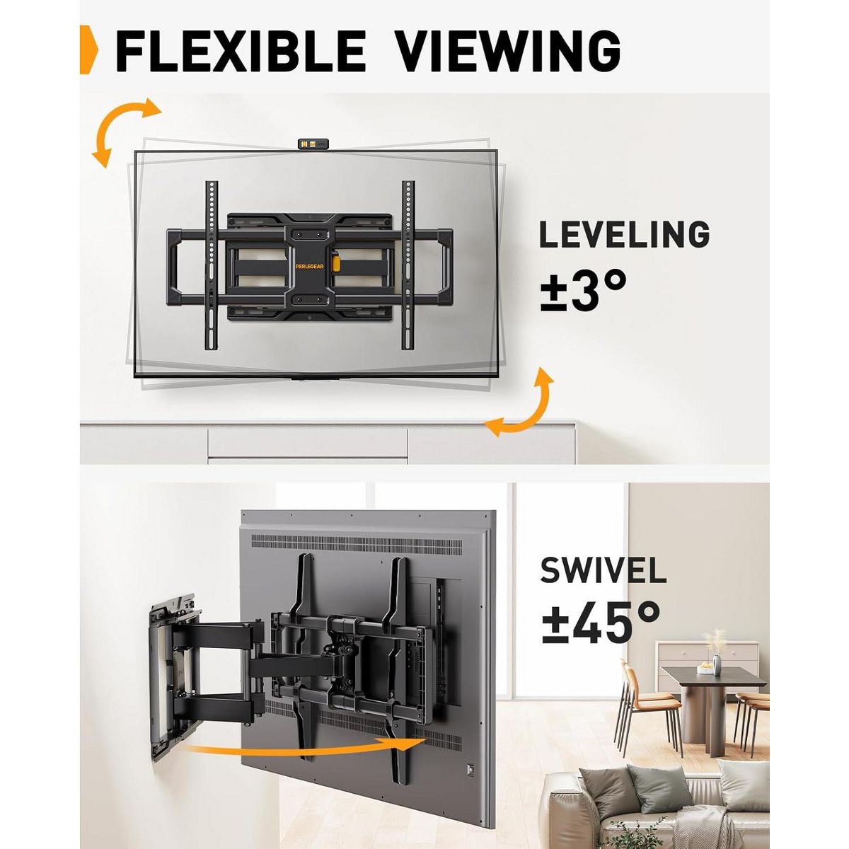 Strong Solid: Featuring dual articulating arms and heavy-duty steel construction, this TV wall mount bracket is performance, durability, and safety, and can hold up to 132 lbs. The upgraded wall plate is wider for more support, while anti-drop end caps and security locks help to keep your TV in place.