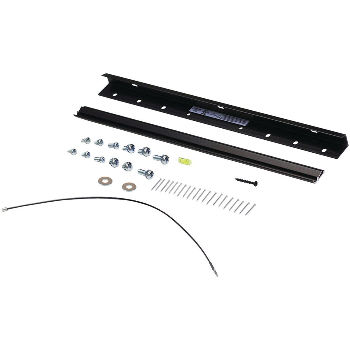 The Hangman 26 in.–55 in. Simple, No-Stud TV Hanger will mount any LED thin screen TV in less time than it takes to unpack it. It consists of two interlocking aircraft-grade aluminum brackets. One bracket attaches to the back of the TV and the other bracket installs on the wall. Once installed, a 1 in. clearance from the wall provides easy access and space for cords and cables. The wall track has a foam backing to minimize wall damage. Once removed, all that is left behind are tiny pinholes that can be easily covered up. It comes in black anodized finish._