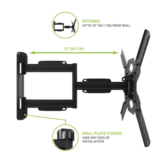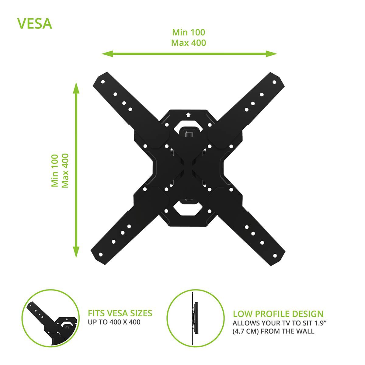 - VESA Compatibility: Supports VESA patterns up to 400 x 400, ensuring compatibility with a wide range of TV brands.