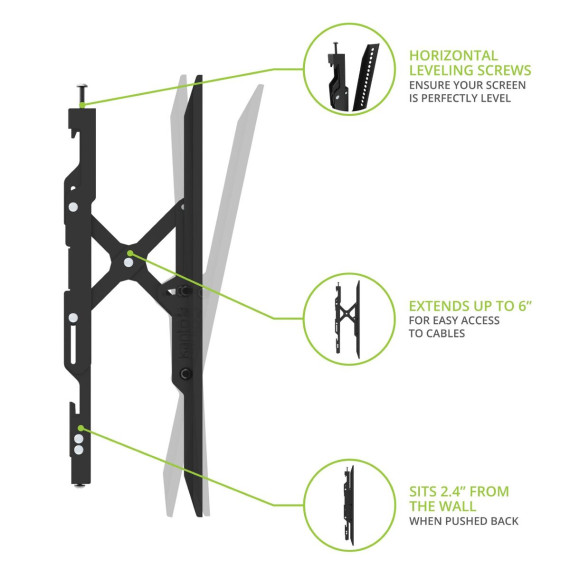 Kanto TE300 Advanced Extend and Tilting TV Wall Mount Transform your viewing experience with the Kanto TE300 Advanced Extend and Tilting TV Wall Mount, designed for TVs ranging from 43†to 90†and supporting up to 150 lbs. This mount not only enhances your living space but also ensures optimal viewing angles and easy access to your TV's ports. Featuring an impressive 6†extension from the wall, the TE300 allows effortless access to cables and connections, something that standard tilt mounts simply cannot match. The large open wall plate enables seamless installation over electrical outlets or media boxes, providing a clean and organized look.