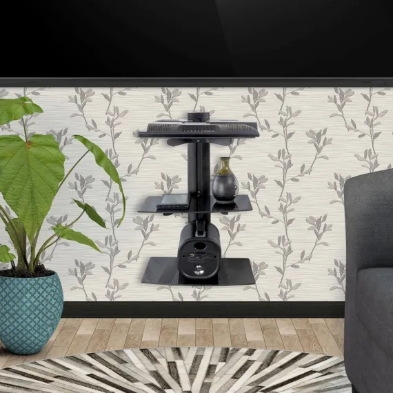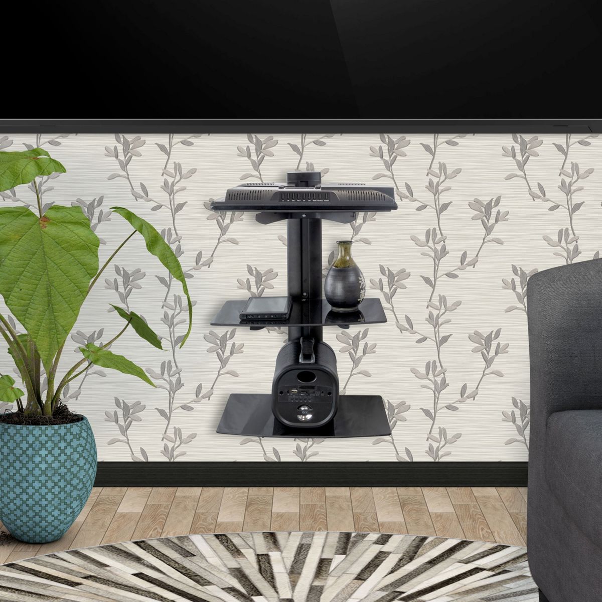 This sleek and elegant DVD/ Received Mount will not only provide you with the ease of having your choice of media devices right by your Television, but will be securely mounted to save space. With a modern design which is both versatile and simple it will not take away from the appearance of your Television, but rather will act like its very own sidekick! With 3 shelves and a maximum weight capacity of 22 LBS this unit will be able to hold your Media Players, Docking stations, Soundbars, DVD players or Digital Receivers. Dark Tampered Glass is joined with the Aluminum Tubing to elevate the appearance of any entertainment systems you choose to place on this multimedia shelving unit.