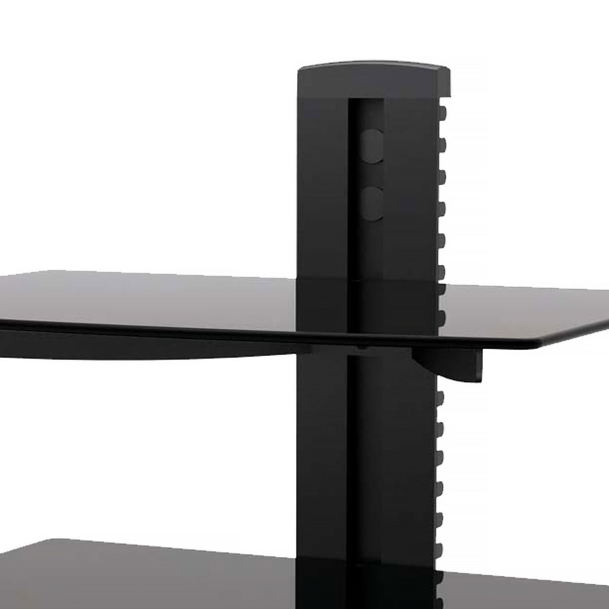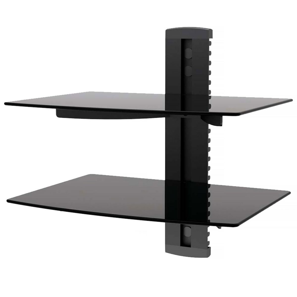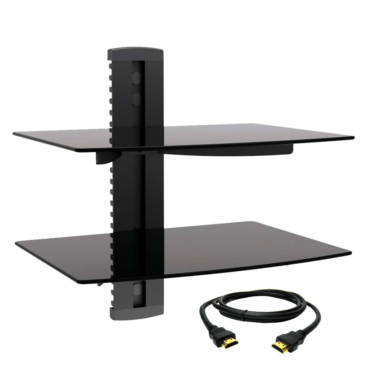 MegaMounts Double shelf wall mounts are build with tempered glass to support both DVD players and Gaming Consoles. It's a great addition to our Full Motion Wall Mount for Plasma-LCD-LED TV's. Hides cables and cords. Includes mounting hardware. Includes HDMI Cable. Each shelf can hold 22 pounds, 44 pounds total. Durable and adjustable glass
