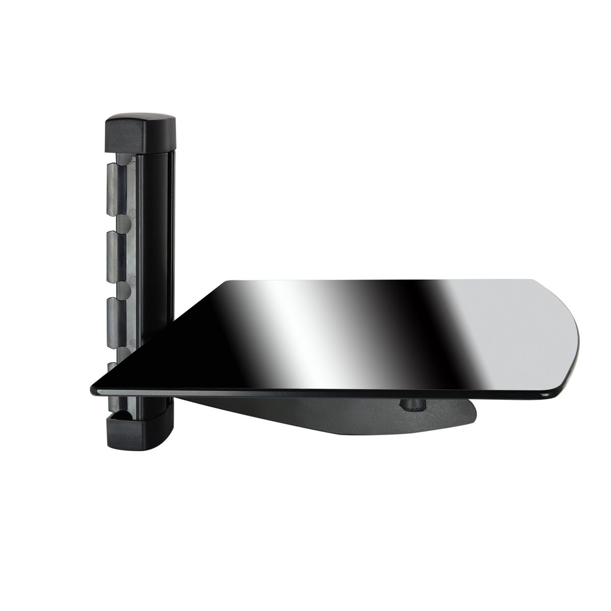Mega Mounts shelf wall mount is built with tempered glass to support gaming consoles and media players. It's a great companion to our Full Motion Wall mount for Plasma, LCD, LED TV's.This wall mounted shelf hides cables and cords for a clean setup. The shelf media organizer includes a full set of mounting hardware.