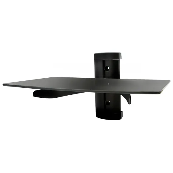 Mega Mounts shelf wall mount is built with tempered glass to support gaming consoles and media players. It's a great companion to our Full Motion Wall mount for Plasma, LCD, LED TV's.This wall mounted shelf hides cables and cords for a clean setup. The shelf media organizer includes a full set of mounting hardware.