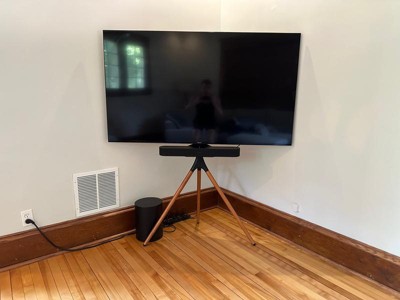 I love the design of the Monoprice easel TV stand, which makes my TV look like an art piece. Its sleek and modern aesthetic adds a touch of elegance to my living room.