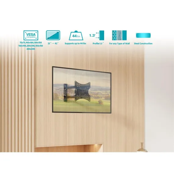 Monoprice Full Motion Single-Stud TV Wall Mount Bracket For 23" To 43" TVs up to 44lbs, Max VESA 200x200, Works