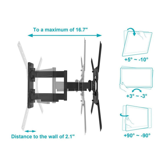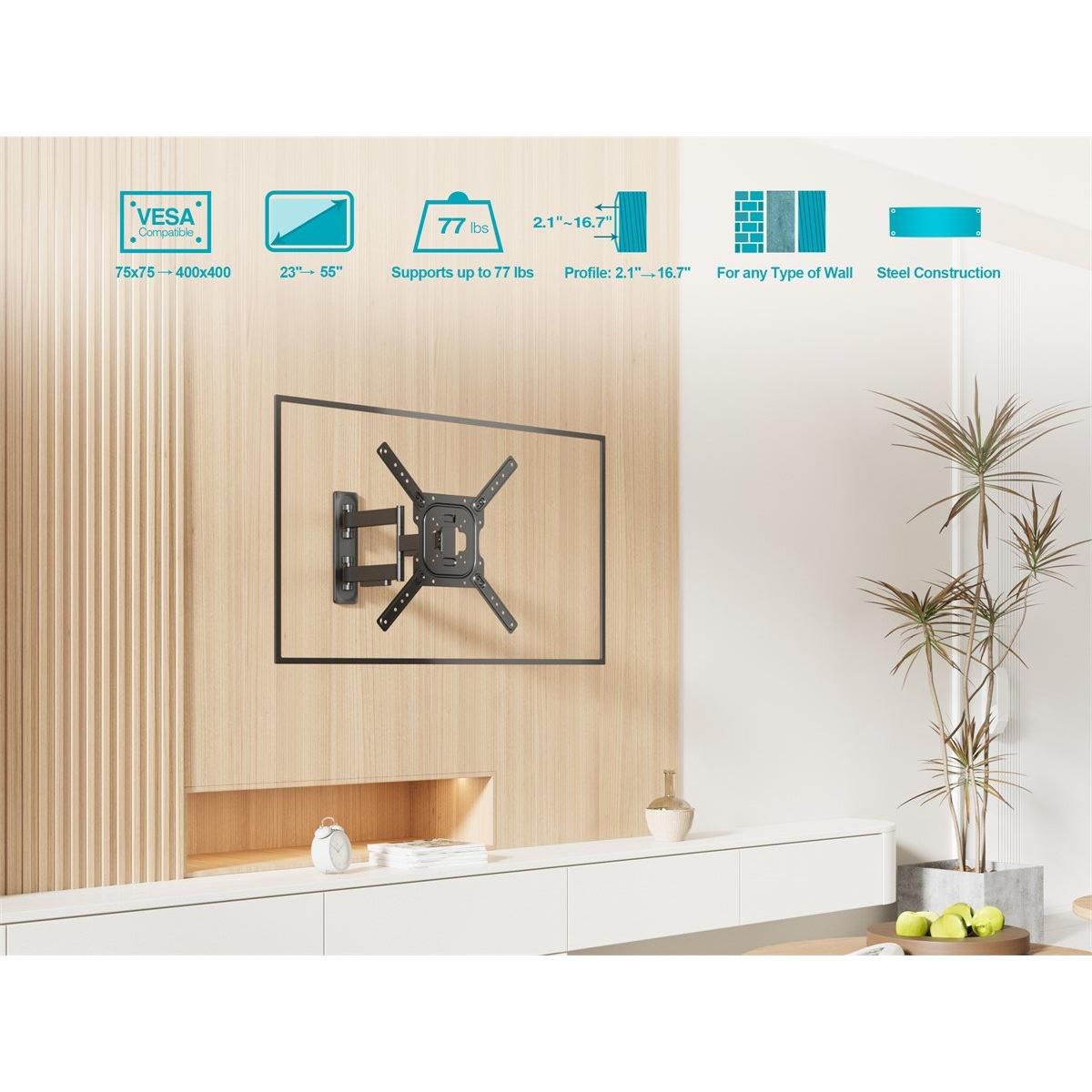 Monoprice TV Wall Mount Bracket For TVs 24in to 55in, Full-Motion Articulating, Max Weight 77lbs, VESA Patterns Up to 400x400, Rotating, UL Certified